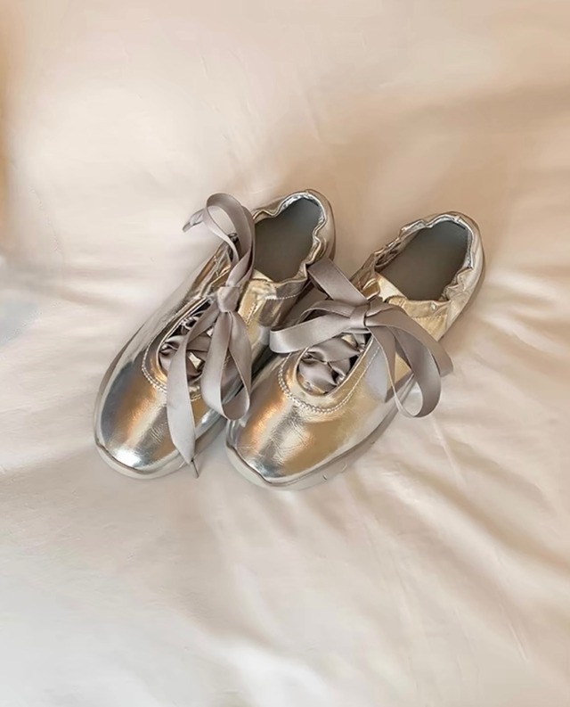 プラットフォームシルバーリボンシューズ