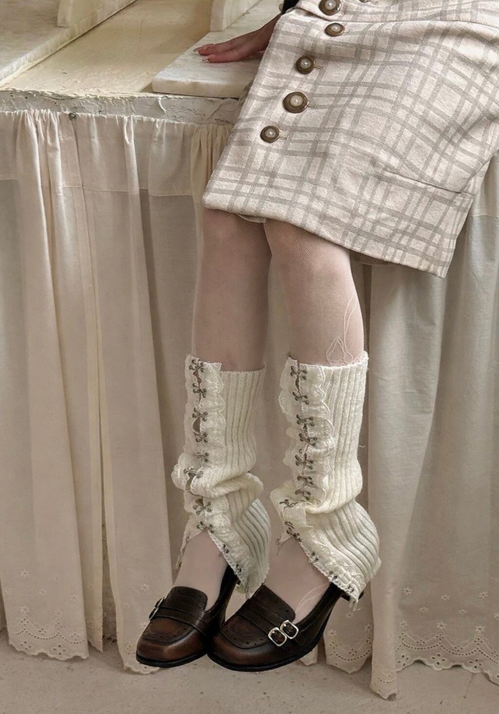 フロントホックニットレッグウォーマー
