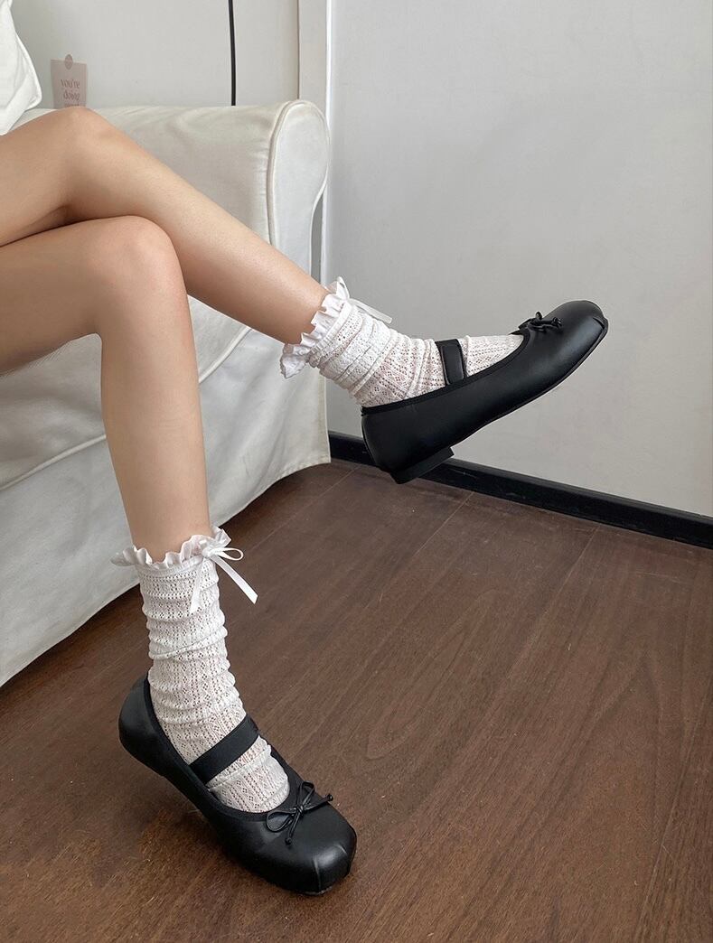リボンサテンバレエシューズ