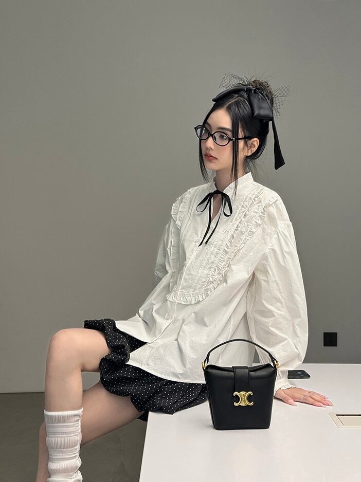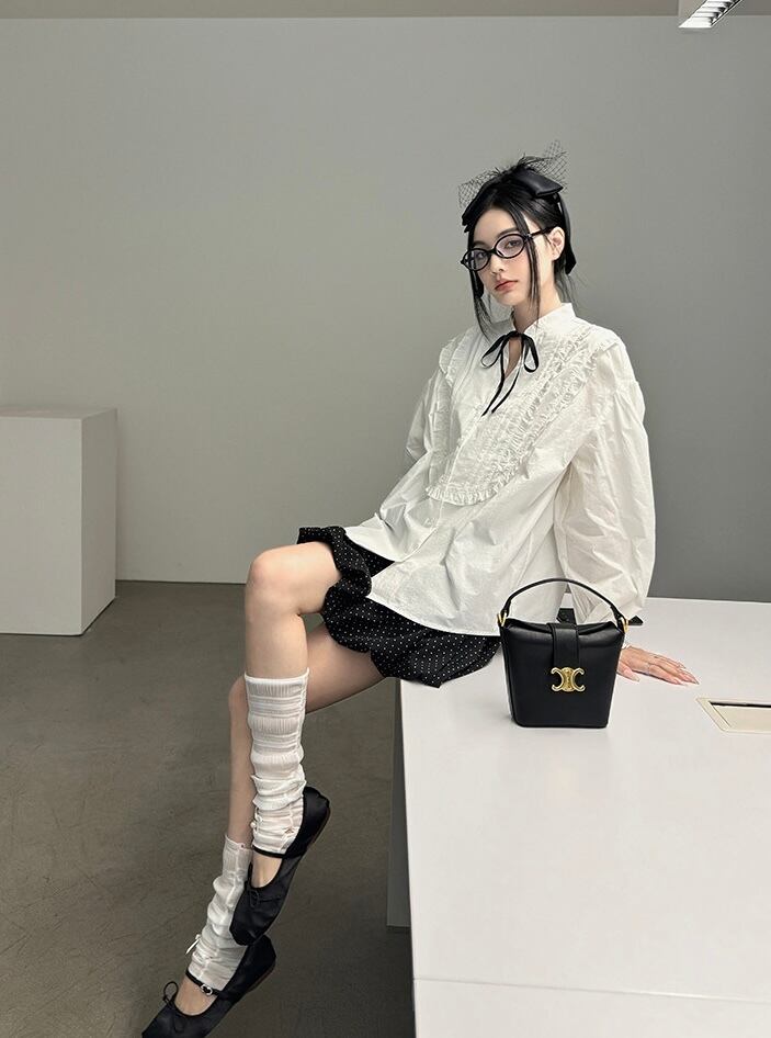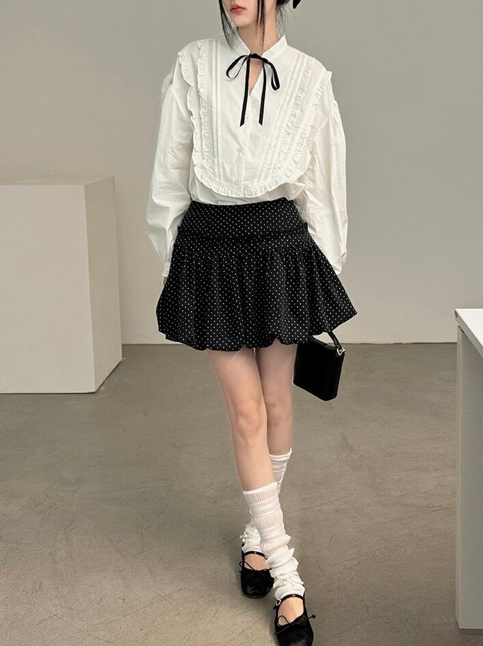 フリルリボンブラウス