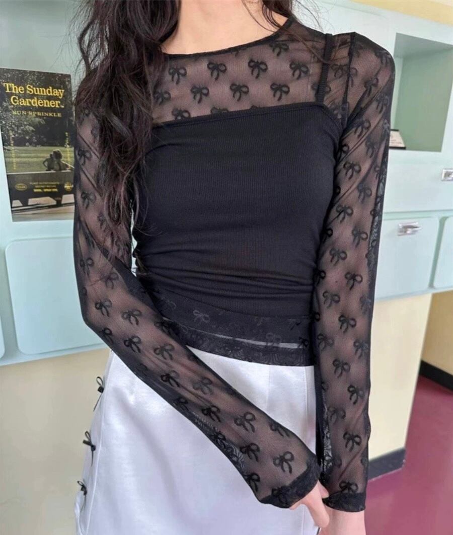 リボンデザインシースルートップス