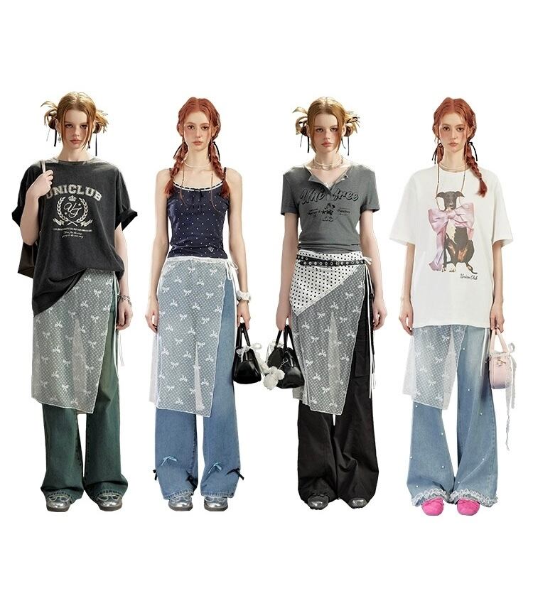 UNIFREE シースルーリボン巻きスカート