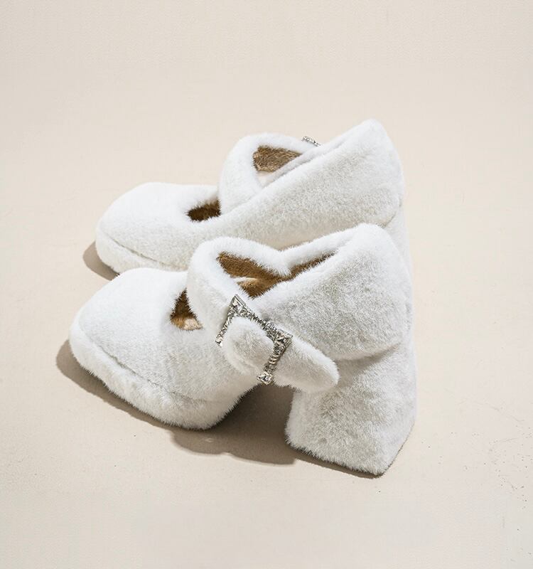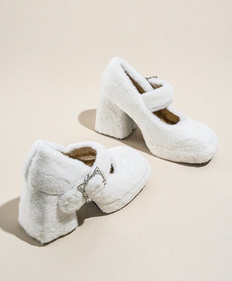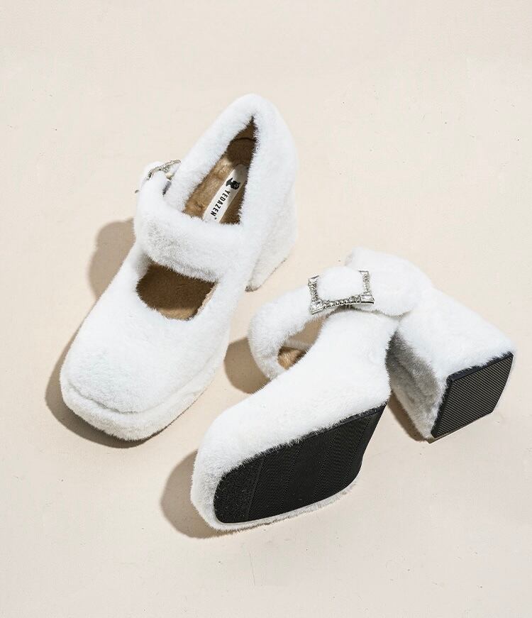 【Blanc and Noir × BLOOMOON もふちゃん様着用】WENROO ファースクエアパンプス