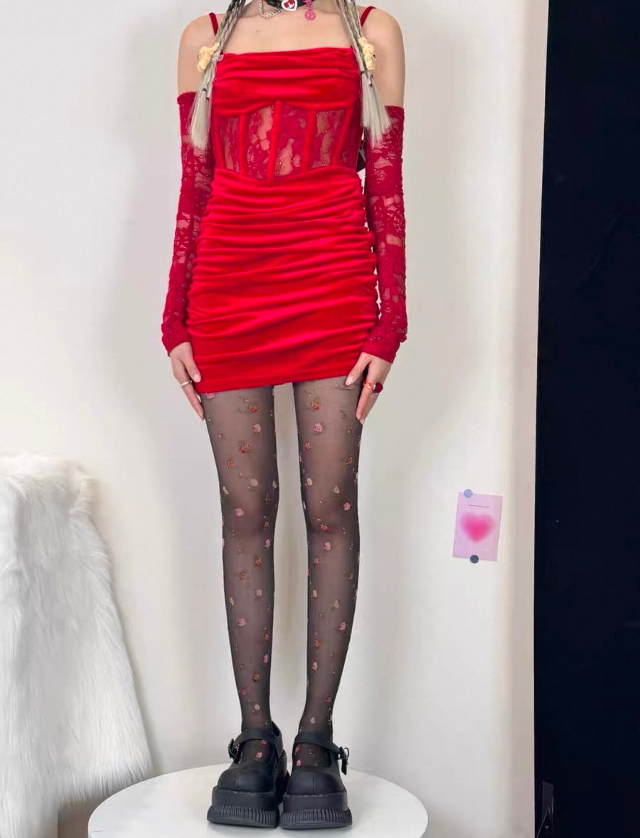 Hot BonBon フラワーデザインストッキング(ブラック)
